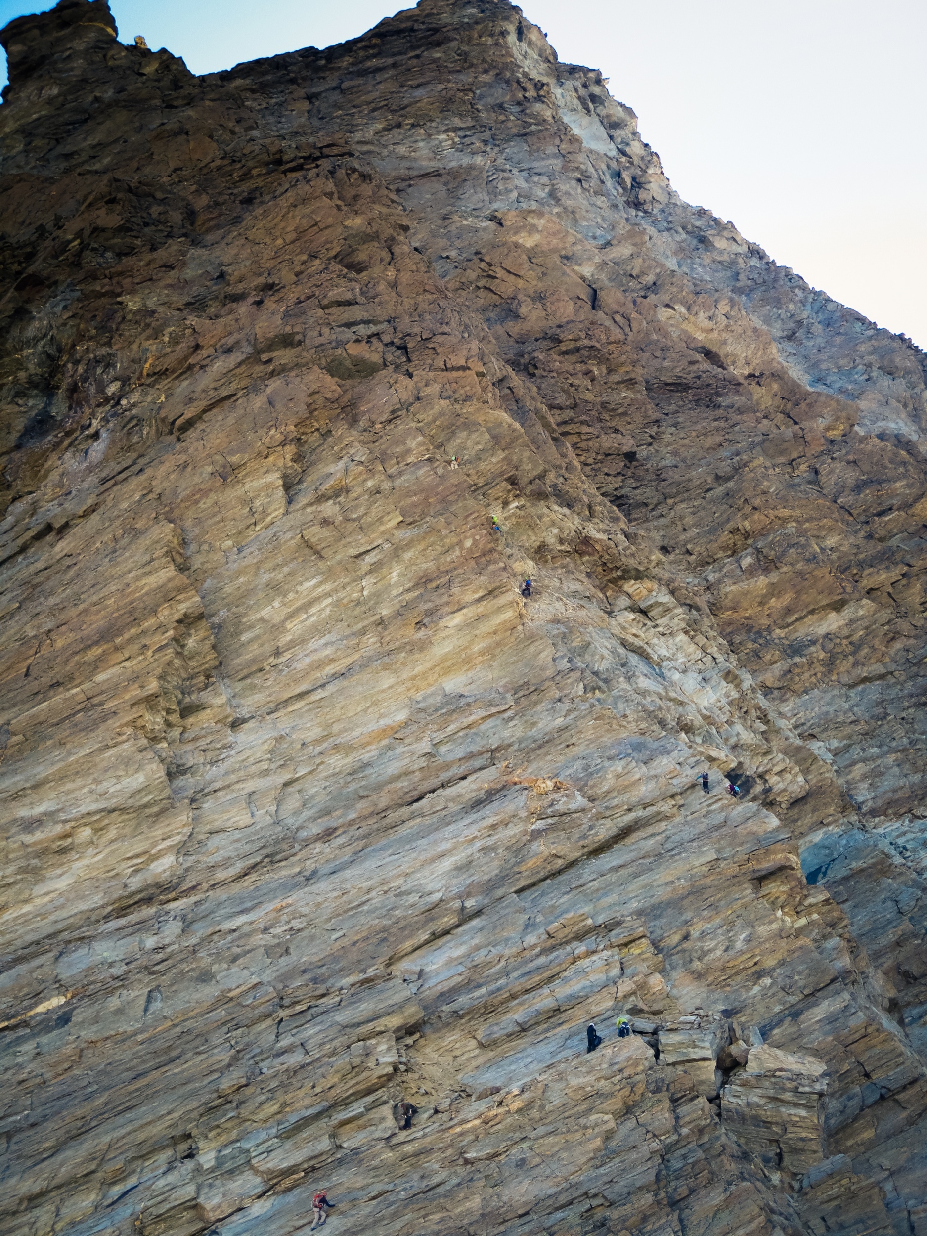 Nous avançons, et si le paysage est magnifique, il nous faut rester concentré car le rocher n’est pas stable. Beaucoup de pierres branlantes (je les appelle « les fourbes ». Elles ont l’air chou, faites pour être empoignées, mais en fait pas du tout). Je teste toutes les prises, j’en arrive même à être parano, à croire que j’empoigne une fourbe alors que non, pas du tout.