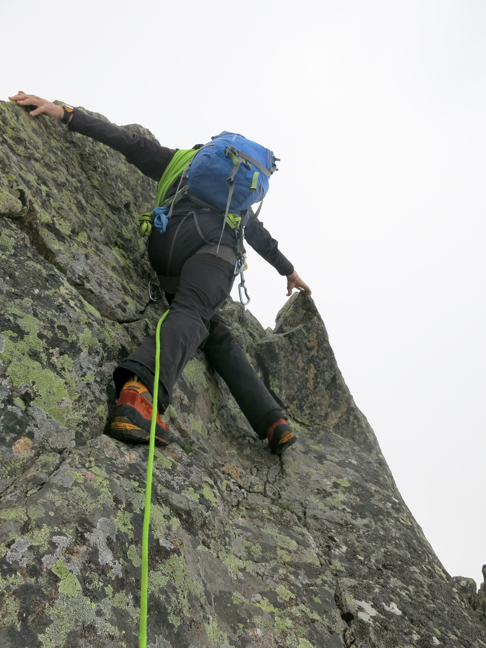 Les passages en escalade sont souvent faciles. J’ai par contre emporté mes bâtons et souvent ils se coincent dans la roche. Quelle idée de prendre des bâtons pour une course de rochers, oui je sais…
